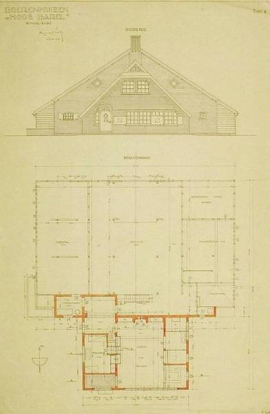 Boerenhuizen 'Hoog Barel', begane grond en gevelaanzicht van de zuidzijde, september 1920