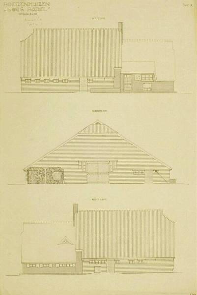 Boerenhuizen, 'Hoog Barel', drie gevelaanzichten, september 1920