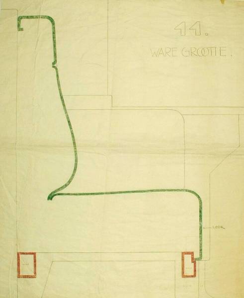 Meubilair voor het grote museum: detail sofa op ware grootte, zijaanzicht, 1922-1926