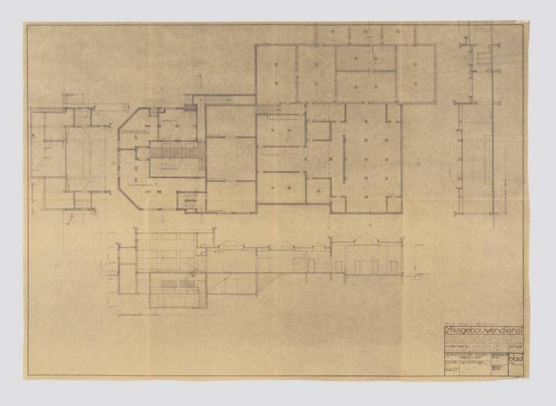 Ontwerp uitbreiding Rijksmuseum Kröller-Müller: Kelder-fundeering & doorsneden (Rijksgebouwendienst), 16 april 1943