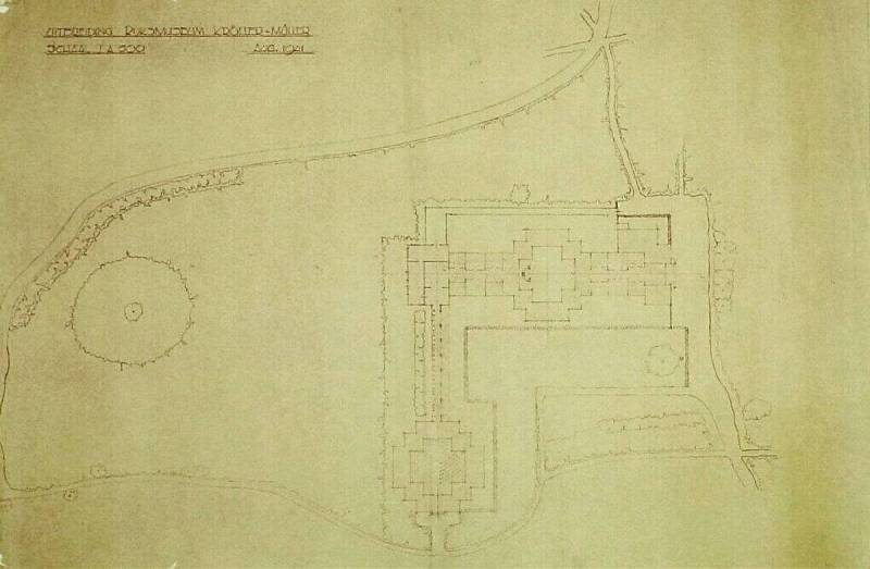 Ontwerp uitbreiding Rijksmuseum Kröller-Müller: Plattegrond en situatietekening, augustus 1941