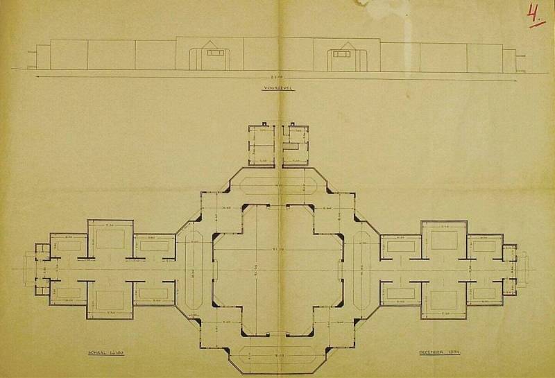 Ontwerp voor een museum: plattegrond en voorgevel, december 1935