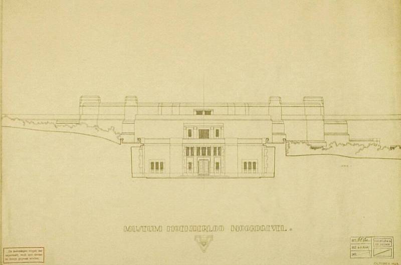 Ontwerp voor het museum bij de Franse Berg: Aanzicht noordgevel, oktober 1923