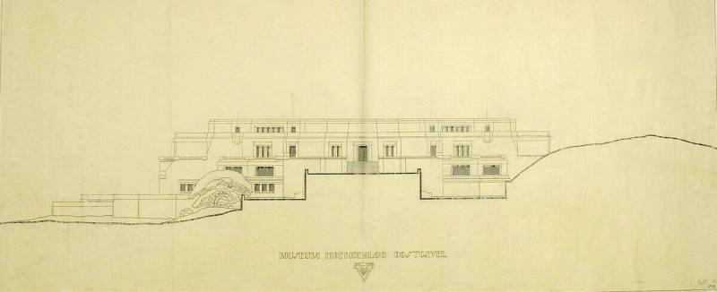 Ontwerp voor het museum bij de Franse Berg: Aanzicht oostgevel (zonder schoorstenen), circa 1921-1928