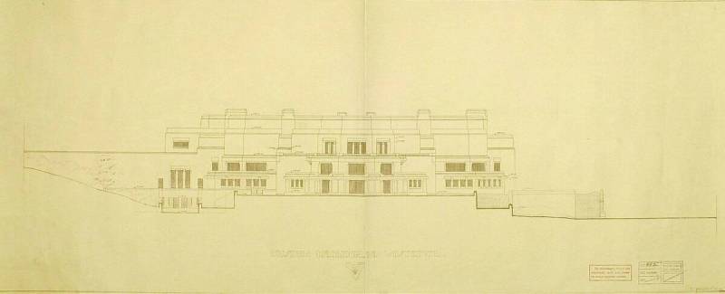Ontwerp voor het museum bij de Franse Berg: Aanzicht westgevel, september 1923