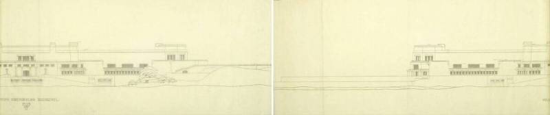 Ontwerp voor het museum bij de Franse Berg: Aanzicht zuidgevel, circa 1921-1928