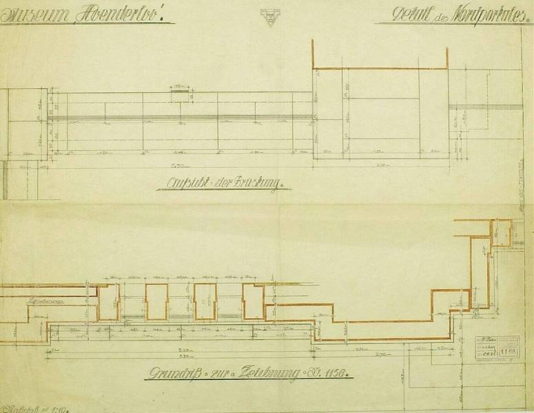 Ontwerp voor het museum bij de Franse Berg: Detail des Nordportales, Aufsicht der Brüstung, Grundriß zur Zeichnung Nr. 1156, 8 november 1921