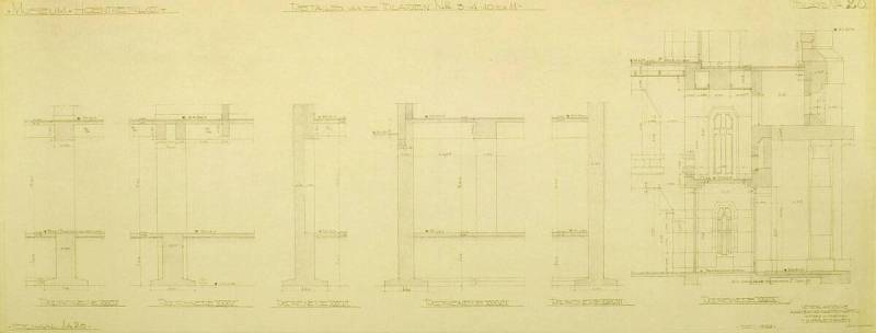 Ontwerp voor het museum bij de Franse Berg: Details van de bladen No. 3, 4, 10 en 11, december 1928