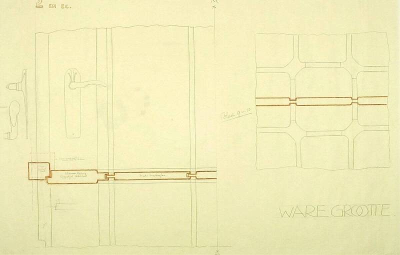 Ontwerp voor het museum bij de Franse Berg: Details van deur, circa 1921-1928