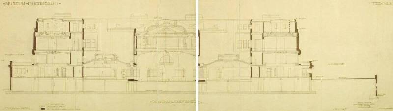Ontwerp voor het museum bij de Franse Berg: Diagonaaldoorsnede, december 1927