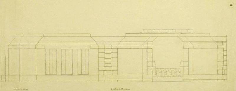 Ontwerp voor het museum bij de Franse Berg: Doorsnede B-A, circa 1921-1928