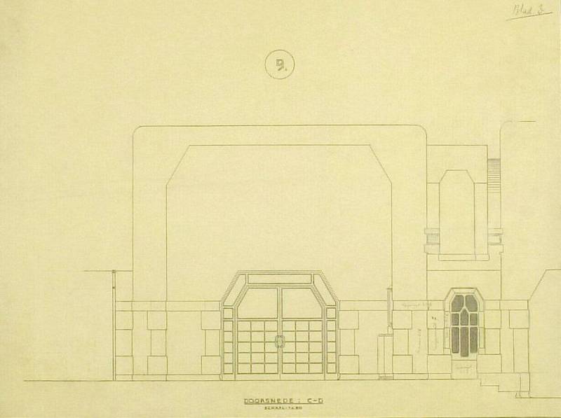 Ontwerp voor het museum bij de Franse Berg: Doorsnede: C-D, circa 1921-1928