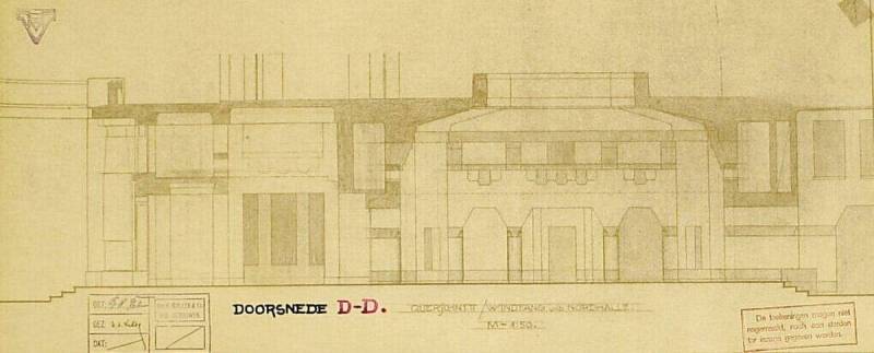 Ontwerp voor het museum bij de Franse Berg: Doorsnede D-D; Querschnitt Windfang und Nordhalle, circa 1921-1928