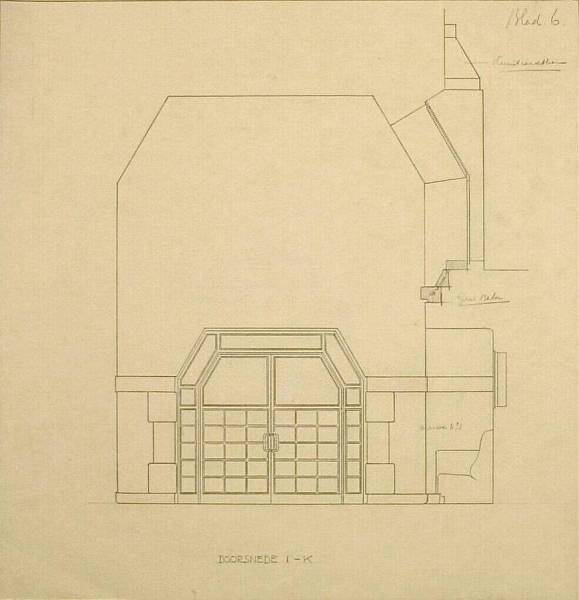 Ontwerp voor het museum bij de Franse Berg: Doorsnede I-K, circa 1921-1928