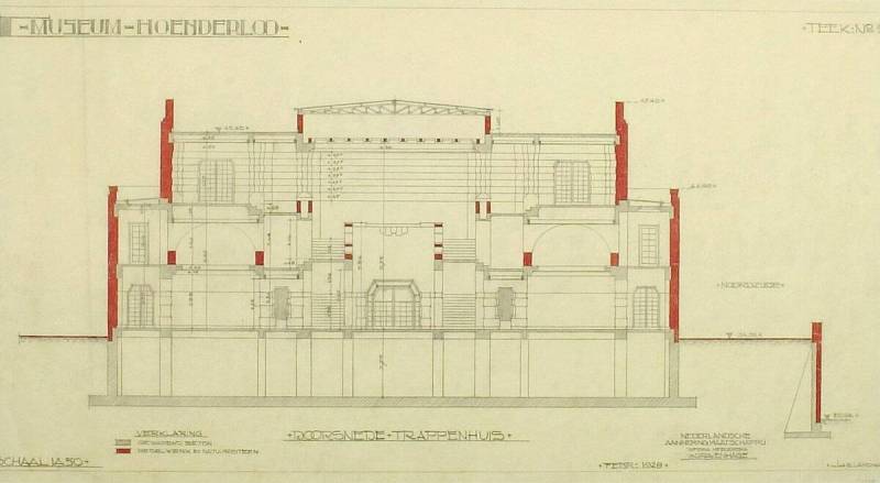Ontwerp voor het museum bij de Franse Berg: Doorsnede trappenhuis, februari 1928