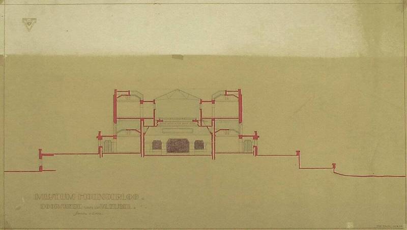 Ontwerp voor het museum bij de Franse Berg: Doorsnede van de vleugel, 16 juni 1926