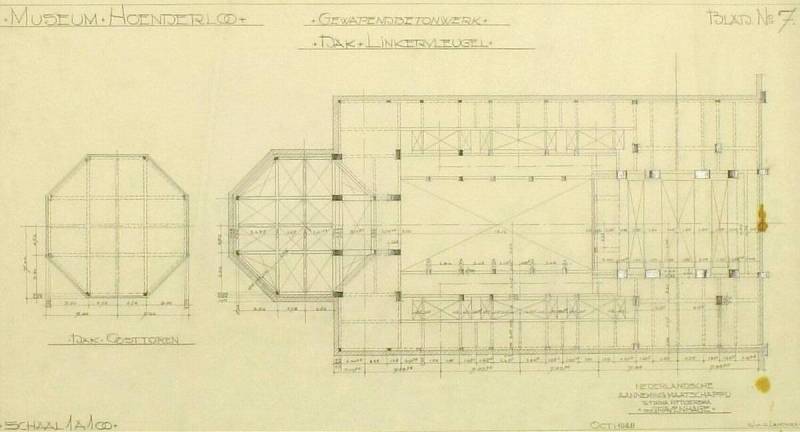 Ontwerp voor het museum bij de Franse Berg: Gewapendbetonwerk dak linkervleugel, oktober 1928