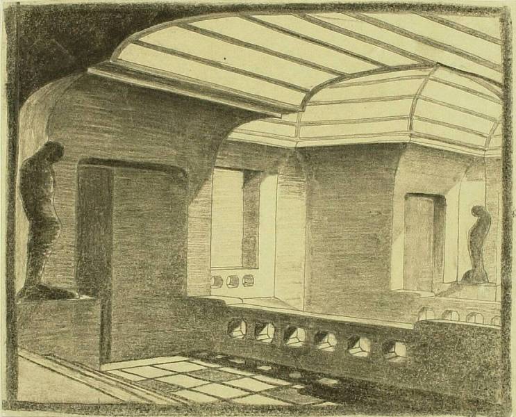 Ontwerp voor het museum bij de Franse Berg: Perspectief, circa 1921-1928