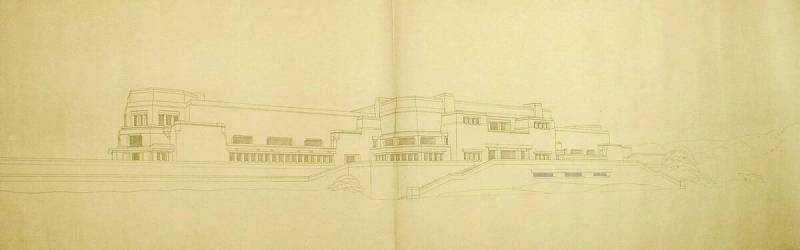 Ontwerp voor het museum bij de Franse Berg: Perspectief: gezien uit het zuidwesten, 1923