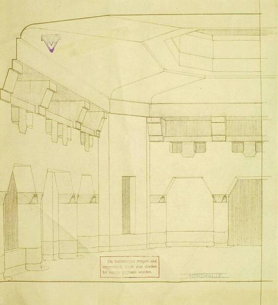Ontwerp voor het museum bij de Franse Berg: Perspectief van de 'Nordhalle', circa 1921-1928