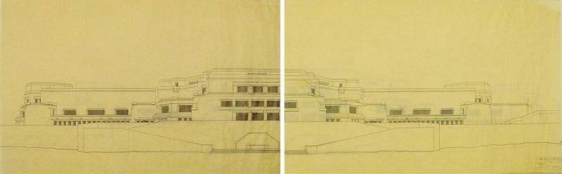 Ontwerp voor het museum bij de Franse Berg: Perspectief: vanuit het zuidwesten, 25 januari 1923