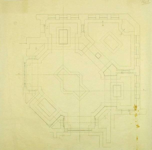 Ontwerp voor het museum bij de Franse Berg: Plattegrond met aanduiding AB, CD, A, B en C, circa 1921-1928