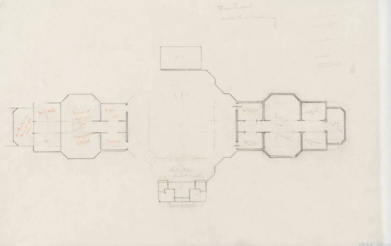 Ontwerp voor het museum bij de Franse Berg: Plattegrond met aanduiding van functies der zalen (vdLeck enz.), circa 1921-1928