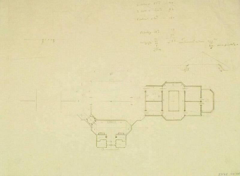 Ontwerp voor het museum bij de Franse Berg: Plattegrond (schets, met berekening hangruimte), circa 1921-1928