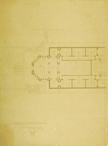 Ontwerp voor het museum bij de Franse Berg: Plattegrond van de 1ste verdieping (linker deel), 1925