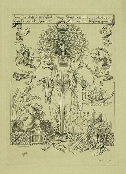 Allegorische voorstelling t.g.v. de abdicatie van Koningin Wilhelmina, 1948