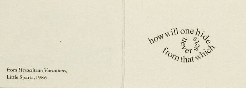 How Will One Hide from That Which Never Sets (from 'Heraclitean Variations'), 1986
