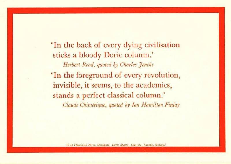 'In the back of every dying civilisation sticks a bloody Doric column', 1981