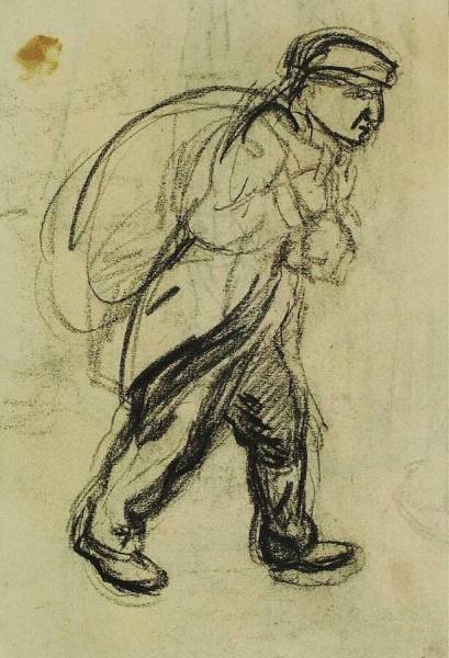 Arbeider die een zak draagt, eind 19de - begin 20ste eeuw