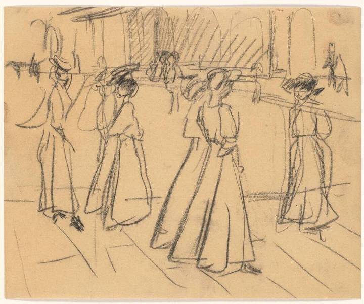 Flanerende vrouwen op de Place Vendôme, Parijs, 1904-1908