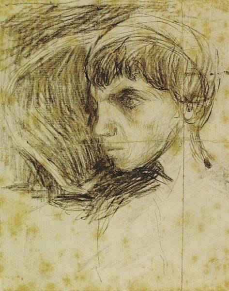 Kop in profiel van een fabrieksjongen uit de Borinage, naar links gekeerd, ongedateerd