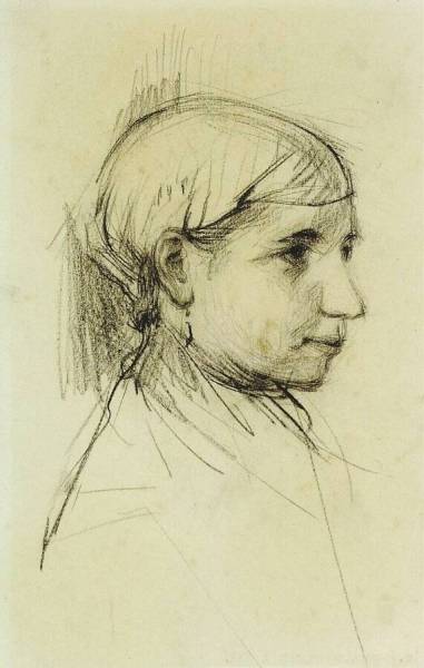Kop van een vrouw, in bijna-driekwart naar rechts gekeerd, eind 19de - begin 20ste eeuw