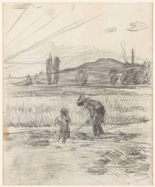 Landschap met boer en kind, Borinage, 1885
