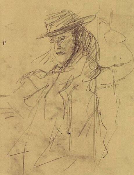 Portret in driekwart van een dame met platte hoed, naar links gekeerd, eind 19de - begin 20ste eeuw