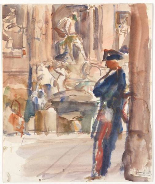 Trevi-fontein, Rome, met gezicht op de centrale nis met het beeld van de zeegod Oceanus, eind 19de - begin 20ste eeuw