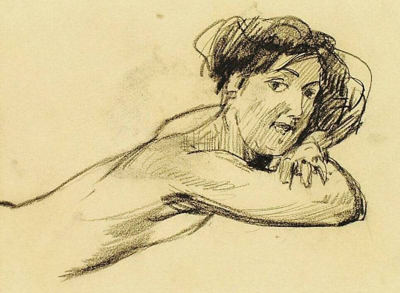 Vooroverliggend naaktmodel, het hoofd naar rechts gekeerd, eind 19de - begin 20ste eeuw