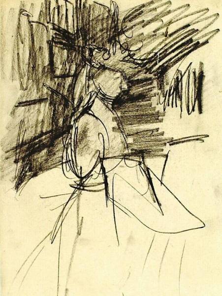 Vrouwenfiguur tegen de achtergrond van een straat, eind 19de - begin 20ste eeuw
