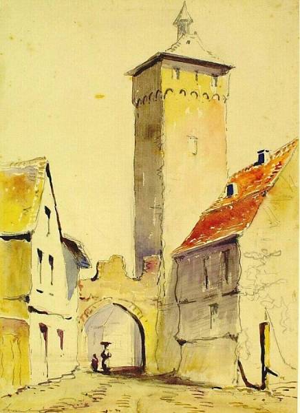 Stadspoort met vrouw en kind (Italië), ongedateerd