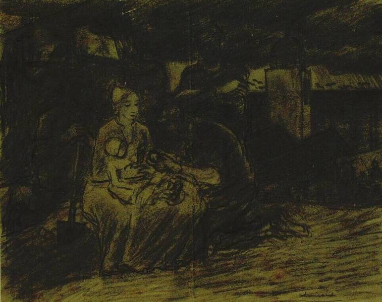 Admiratie (Katwijkse vrouw met kindje bij een bomschuit), circa 1890