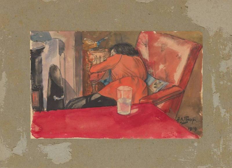zwart potlood, aquarel/gouache op papier