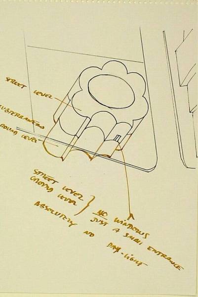 Ontwerpschets project concertzalen, Arnhem, 1993