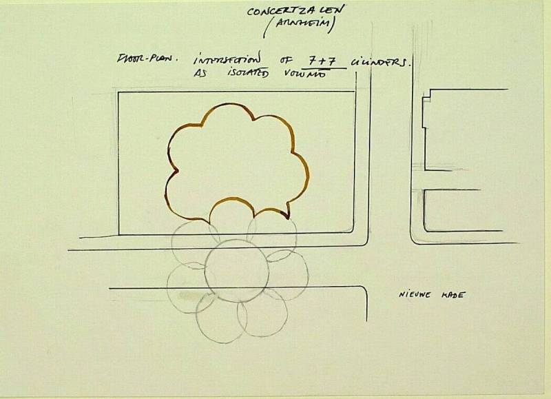 Ontwerpschets project concertzalen, Arnhem, 1993