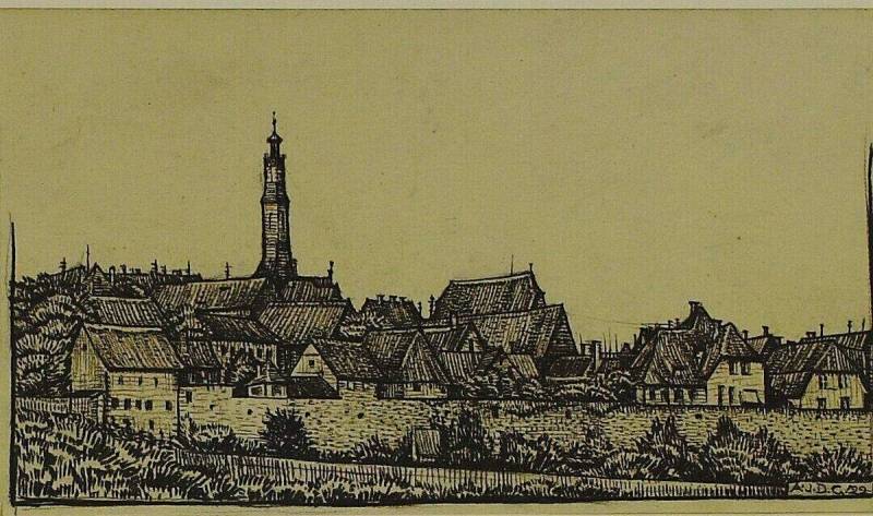 Stadje met toren en huizen, 1922