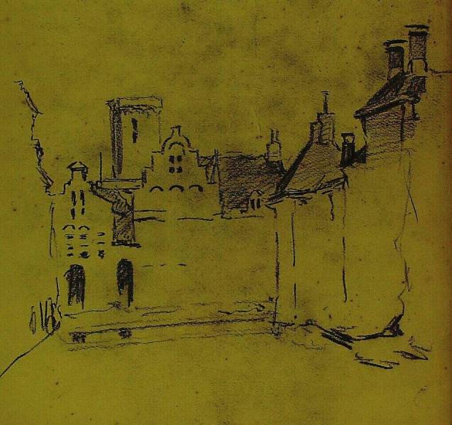 Pleintje met oude gevels en een torentje, eind 19de - begin 20ste eeuw