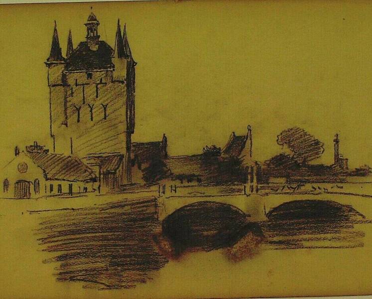 Stadspoort (Zierikzee) met een deel van de brug, eind 19de - begin 20ste eeuw