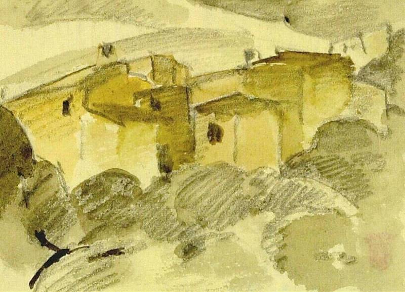 potlood en aquarel op papier